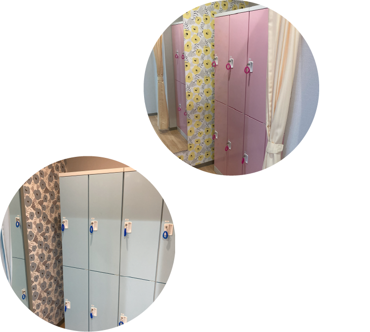 男女別の更衣室(鍵付きロッカー完備)も用意しておりますので、ぜひご利用ください。