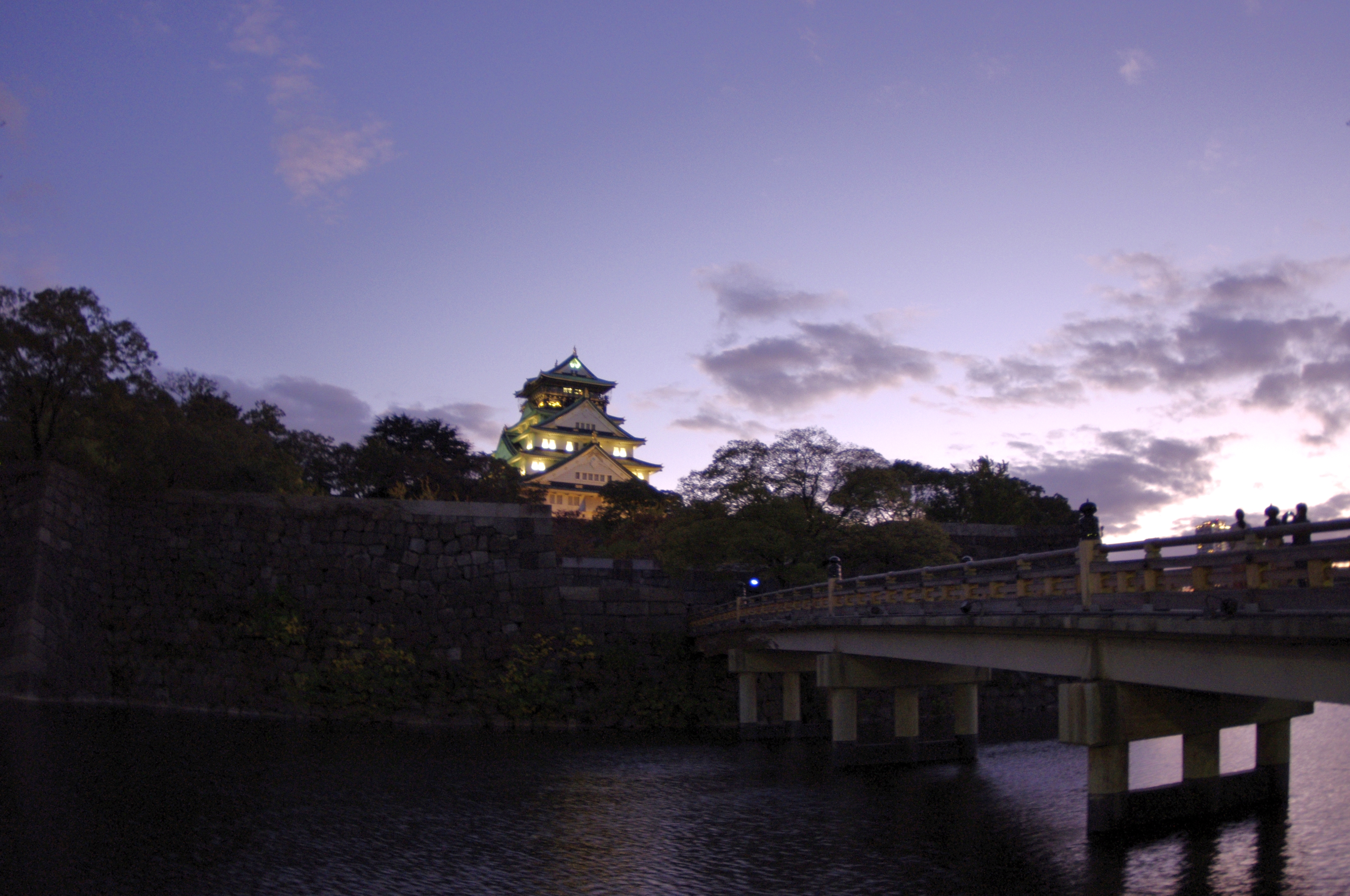 大阪城天守 極楽橋方向からの夕景 落城後、豊臣方の人々は極楽橋を通って逃げたとされます。